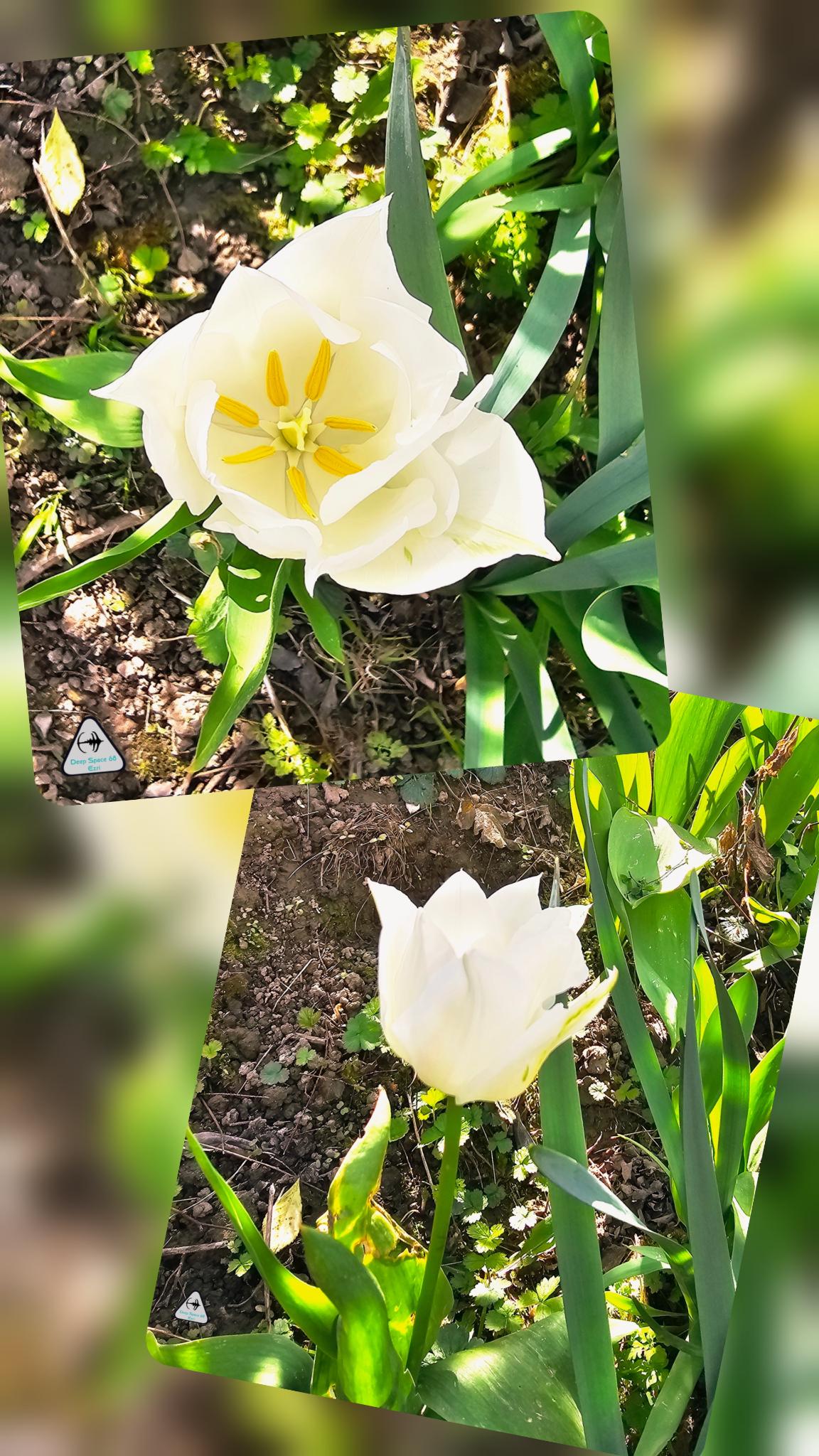 Fast verschämt hinter der zweiblütigen Narzisse versteckte sich auch noch diese weiße Tulpe. Die anderen Tulpen warten anscheinend noch das schlechte Wetter ab.